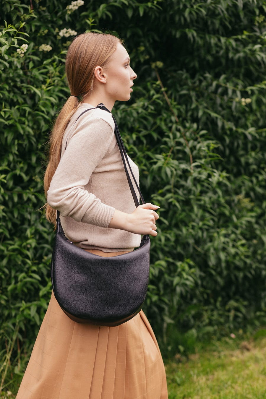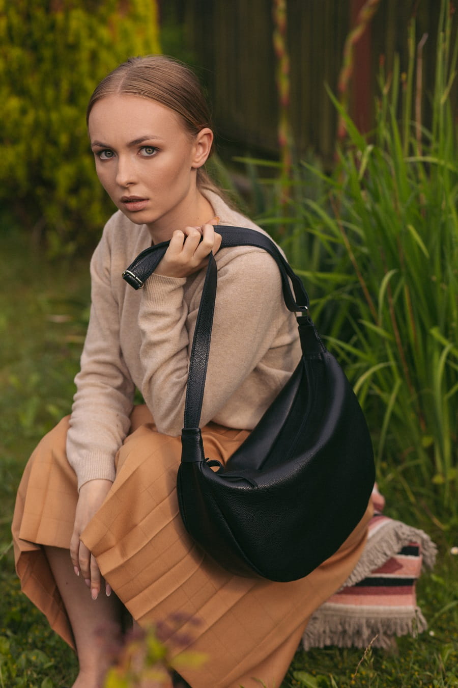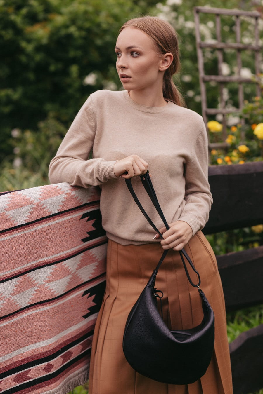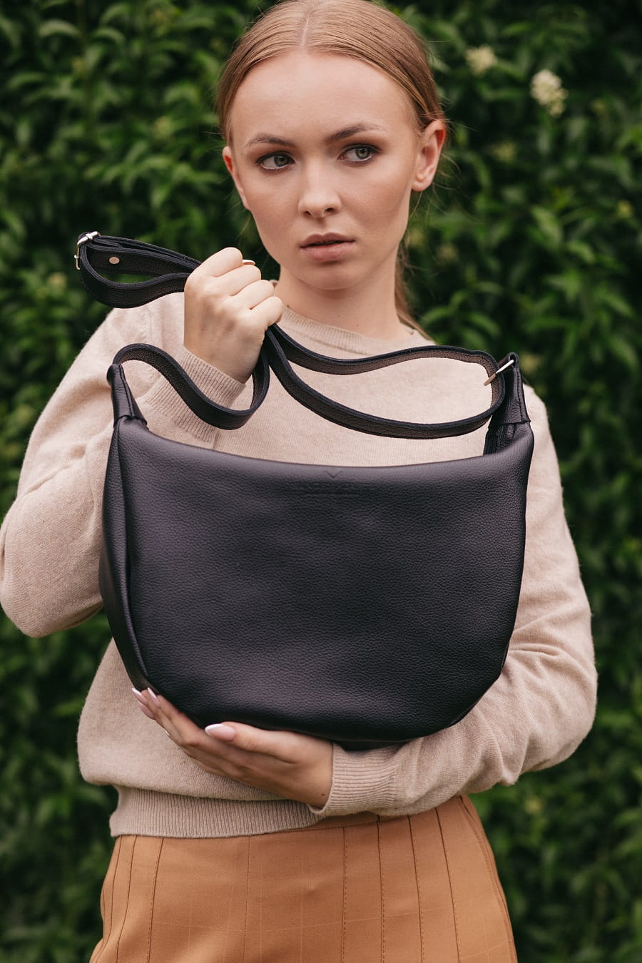 - Inside: internal compartment, two pockets (one of them closed with zipper), key leash, lining