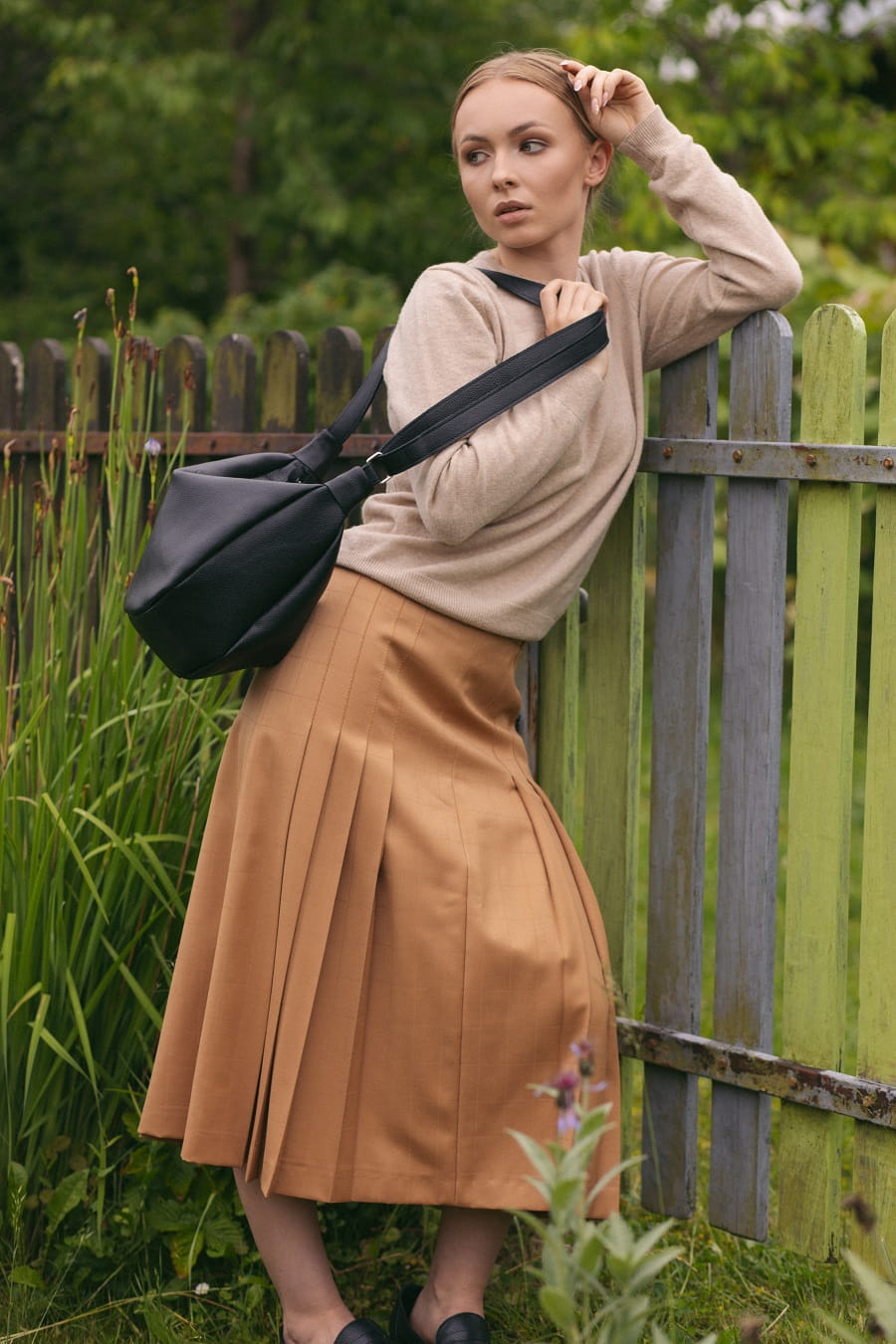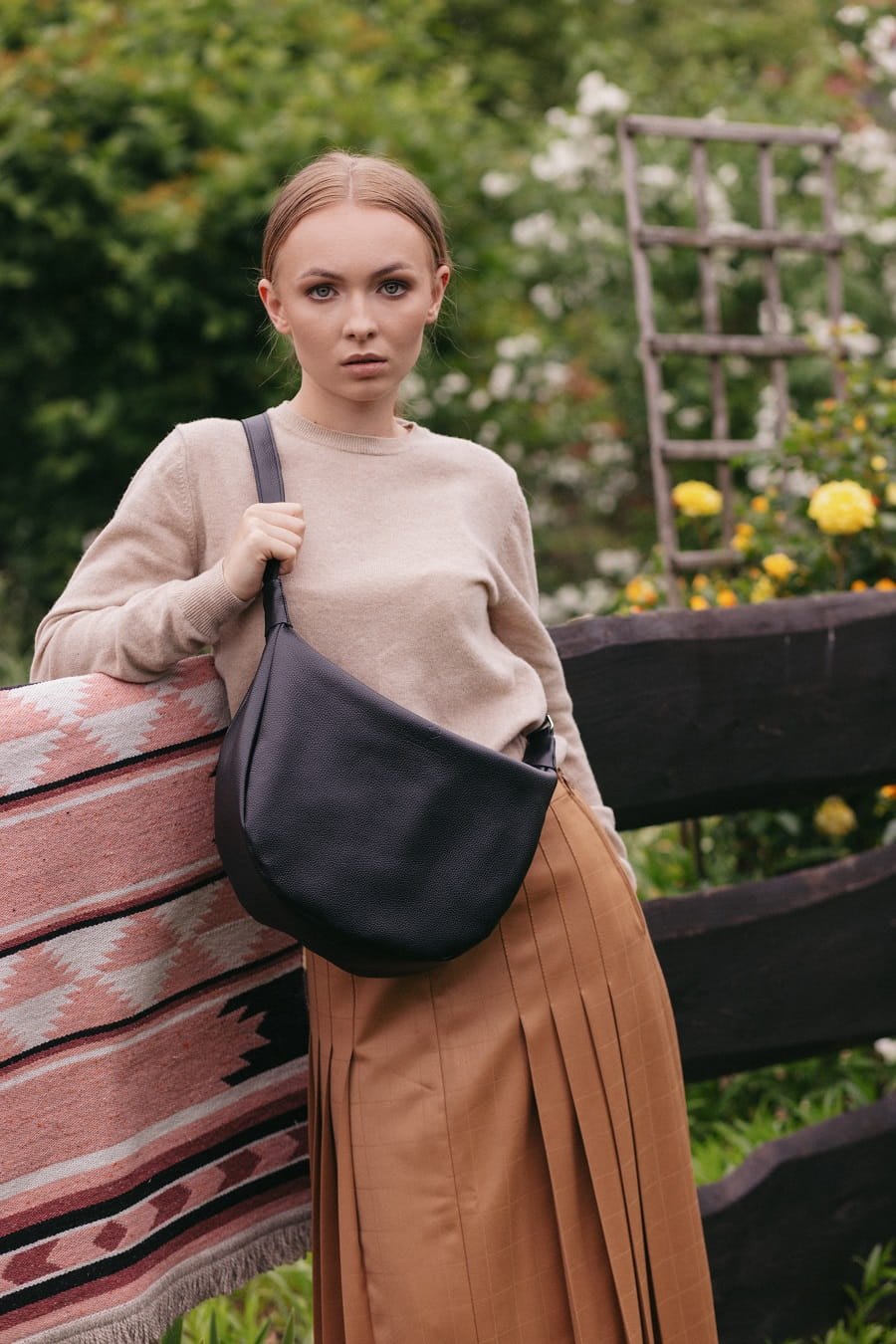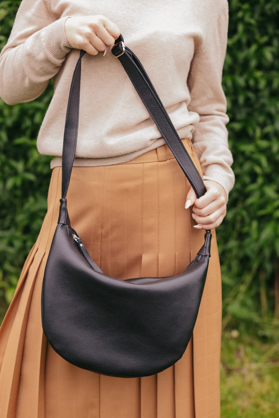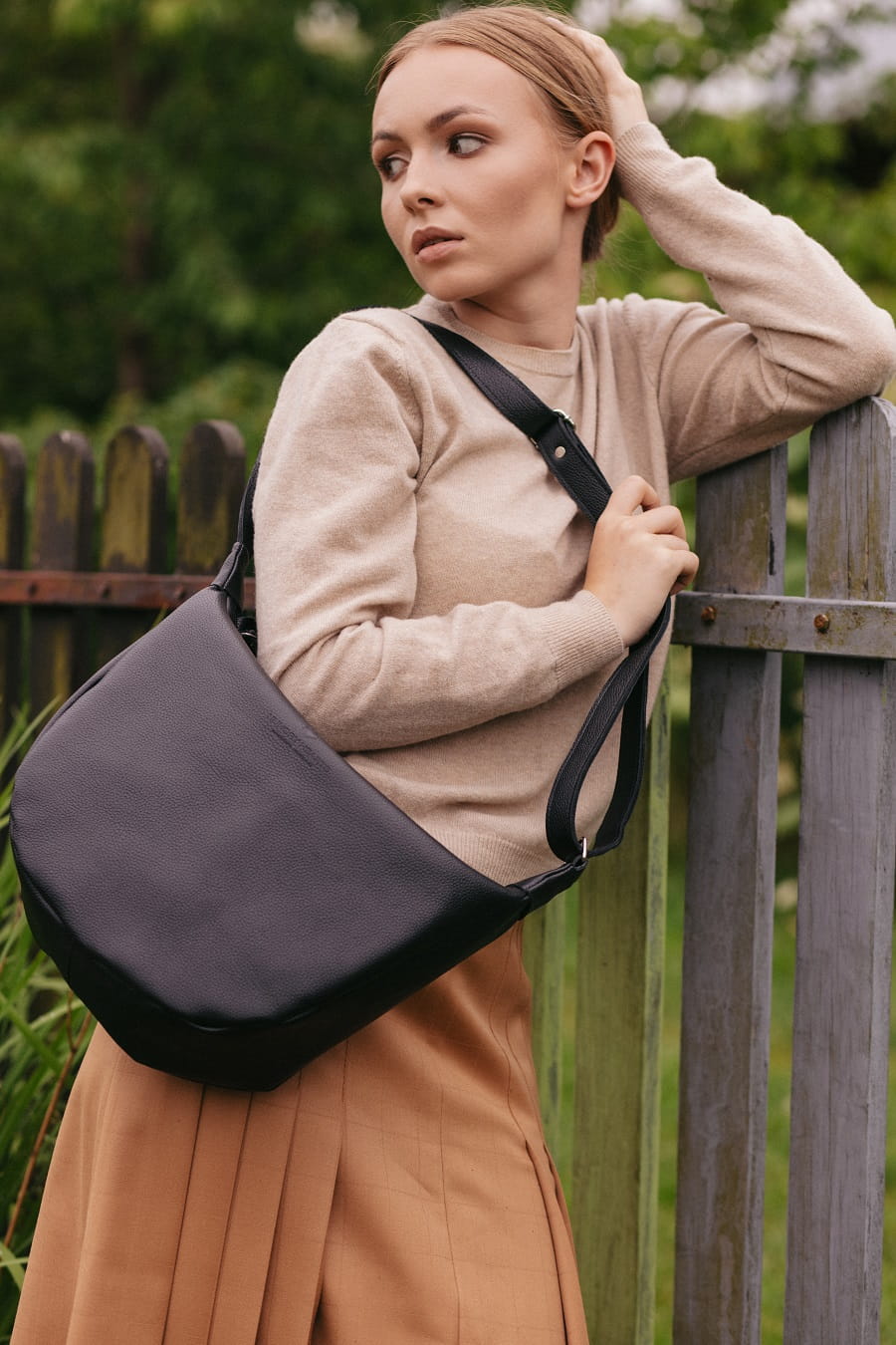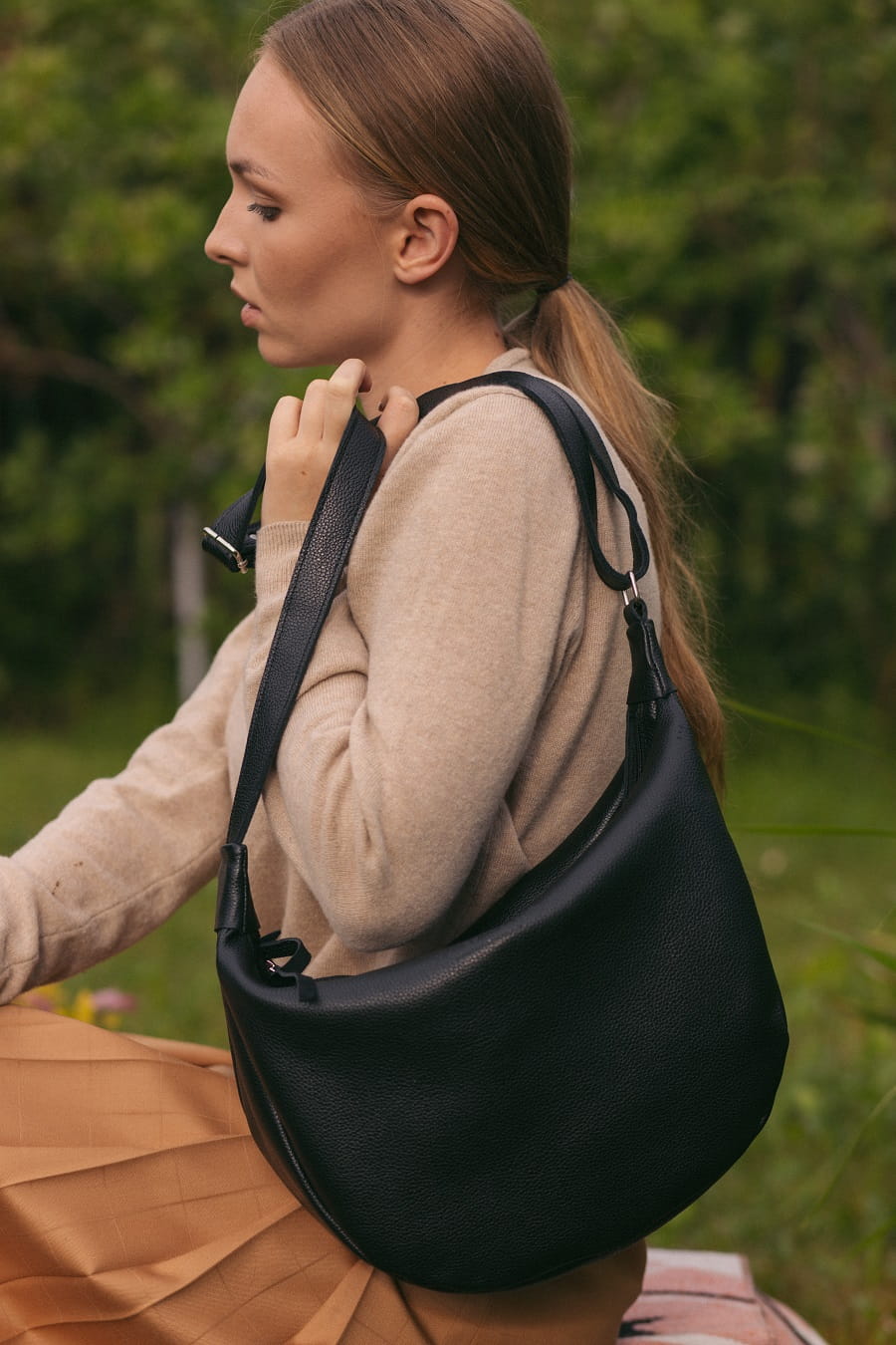 - Inside: internal compartment, two pockets (one of them closed with zipper), key leash, lining