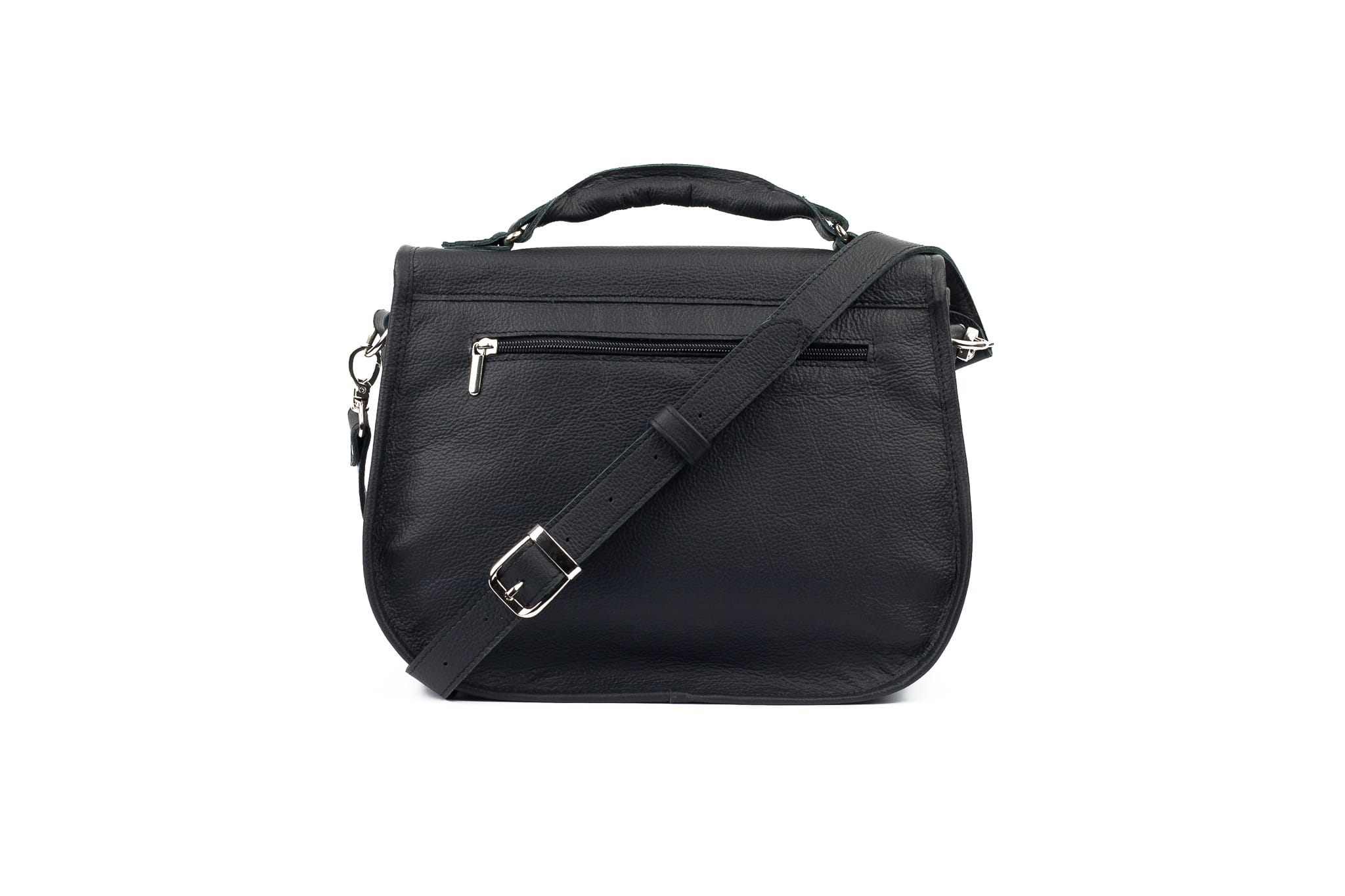 Czarny kolor idealnie pasuje zarówno do eleganckich stylizacji jak i zestawów na co dzień. Jest praktyczny, nie brudzi się i widocznie wolniej zużywa. Czarny jest najczęściej wybieranym kolorem właśnie ze względu na swoje uniwersalne zastosowania. Srebrne okucia i dodatki stanowią doskonałe uzupełnienie dla czarnej licowej skóry. Praktyczne zapięcie na zamek ułatwi zamykanie torebki jednym ruchem dłoni.